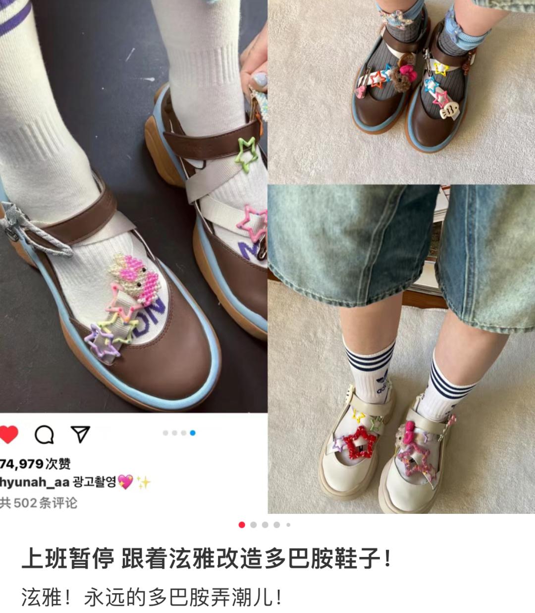 时尚圈的remake(改造)风潮也刮到了溯溪鞋的身上,年轻人将色彩鲜艳的鞋带、皮筋、尼龙绳编织在鞋洞里,甚至把蝴蝶结发卡别在上面,将它爆改成最新潮的“泫雅风”同款。“女爱豆都在穿,因为它显腿细还增高。”