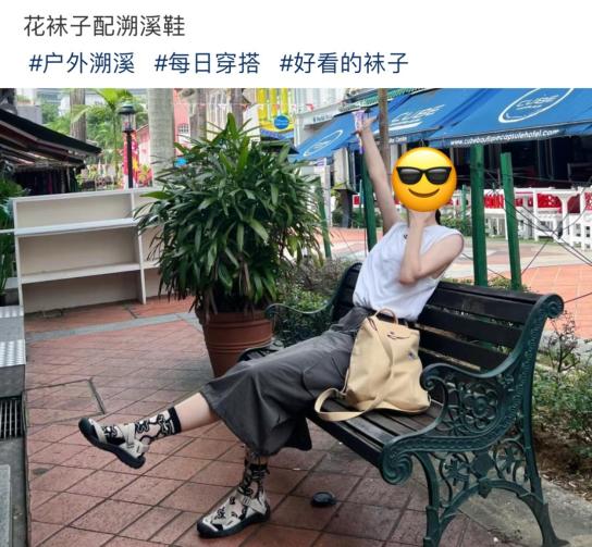 图源@momo花花绿绿的编织带设计,搭配几何图案的袜子,是人过30在色彩上的小小叛逆;纯黑与网眼的组合,放在溯溪鞋身上,再也不会被诟病为“直男审美”,而是少年感男友和气质清新的人夫。