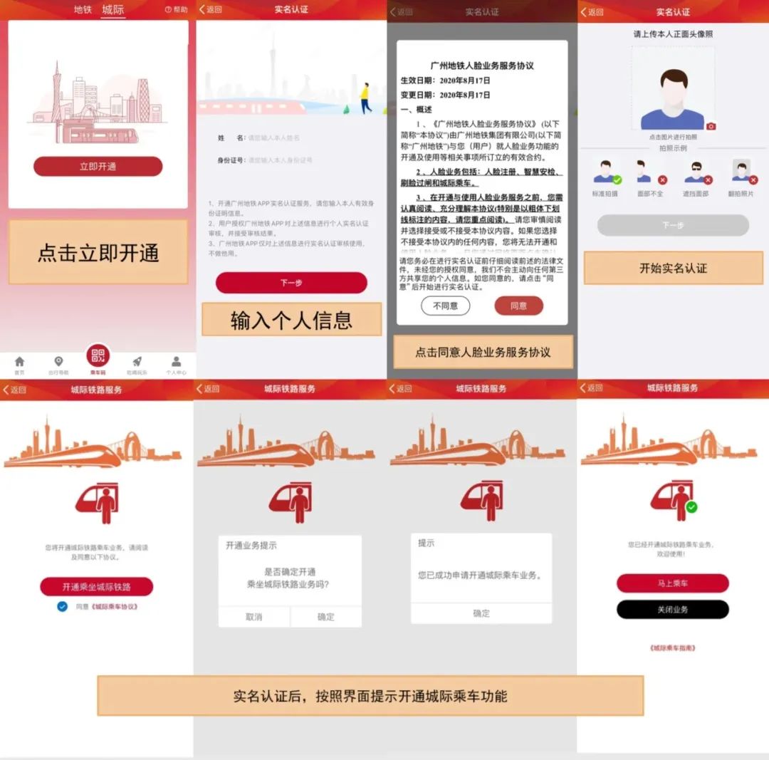 广东城际提醒,旅客使用城际铁路公交化多元支付票务系统购票需提前完成实名注册,可选择在广州地铁APP上通过实名认证后使用城际乘车码经红色闸机核验人脸后进站乘车及出站,也可前往广清、广州东环、佛肇、莞惠城际任一车站的自助客服中心,凭本人身份证(年满14周岁)、护照、港澳同胞回乡证等证件进行实名制验证后绑定实体票卡。