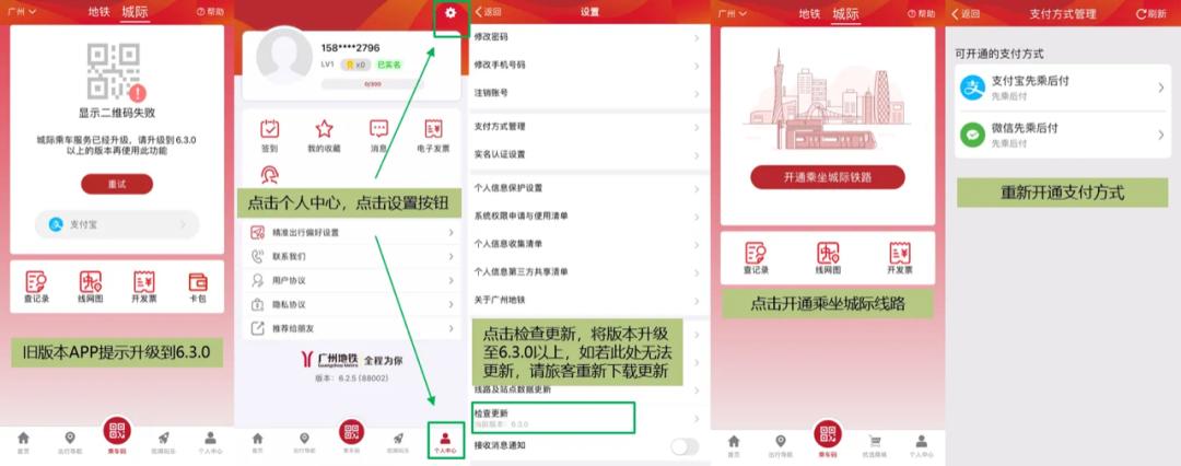 温馨提示:使用城际乘车码乘车需要提前下载广州地铁APP并将APP升级到6.3.0或以上版本。发票开具方式