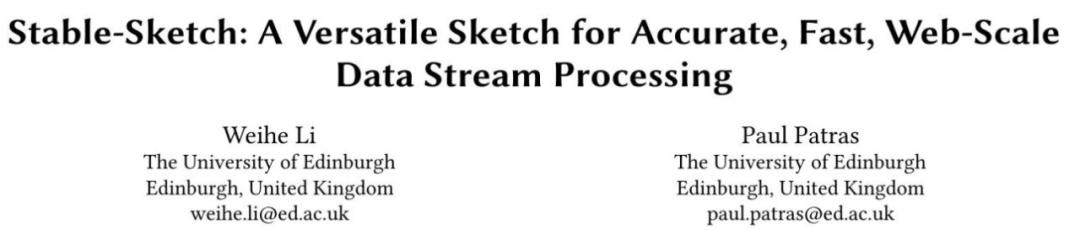 标题:Stable-Sketch: A Versatile Sketch for Accurate, Fast, Web-Scale Data Stream Processing