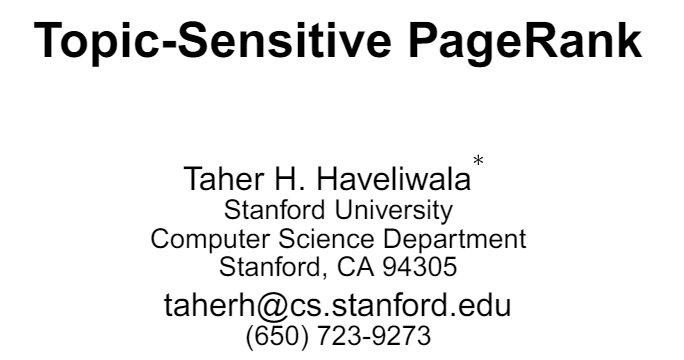 论文地址:http://www-cs-students.stanford.edu/~taherh/papers/topic-sensitive-pagerank.pdf
