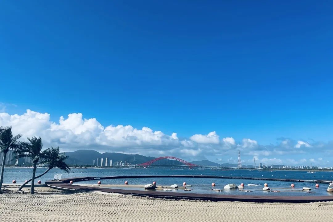 北仑梅山湾度假区梅山湾沙滩公园是目前华东地区规模最大的人工沙滩,海岸线长达1.88km。站在沙滩上望去,海天一线,整个人陷入一望无际的碧蓝之中,耳边吹来缕缕清凉的海风,仔细聆听着阵阵涛声,所有的烦恼都随着浪花翻滚而去。