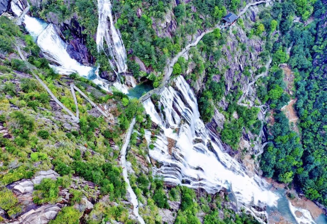 天台山大瀑布景区天台山大瀑布被誉为“中华第一高瀑”,自古以来就名扬天下。千余年来,王羲之、李白、陆游、徐霞客等文人墨客纷纷前来探幽寻奇。9级大瀑布从桐柏山上飞泻而下,如银河倒垂,瀑声如雷,声撼天地,实属罕见。