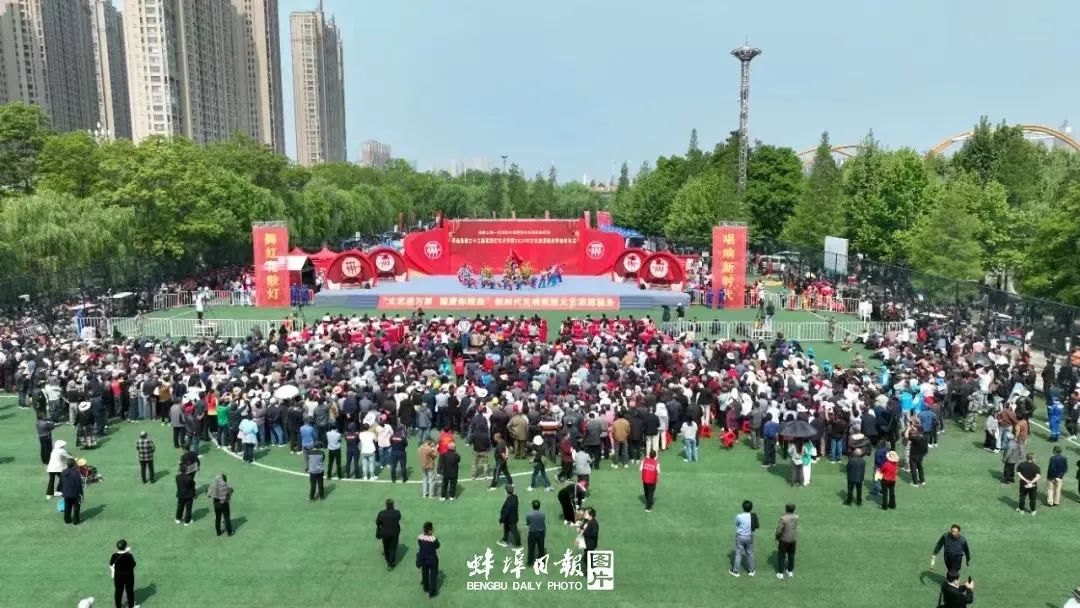 5月6日,在滨淮湿地公园东广场,怀远县第三十三届花鼓灯艺术节暨2024年文化旅游美食季举行启动仪式。热情好客的怀远人民,踩着咚咚的鼓点,舞起欢快的花鼓灯,喜迎远道而来四面八方的宾客。台上,上自70岁下到7岁演员,尽情展示自己的才华和绝活,将花鼓灯艺术奔放、灵动、风趣的特点展现得淋漓尽致。“非物质文化遗产是延续历史文脉的瑰宝,找到传统文化和现代生活的连接点,才能不断满足人民日益增长的美好生活需要。”怀远县文旅局副局长潘涛说。
