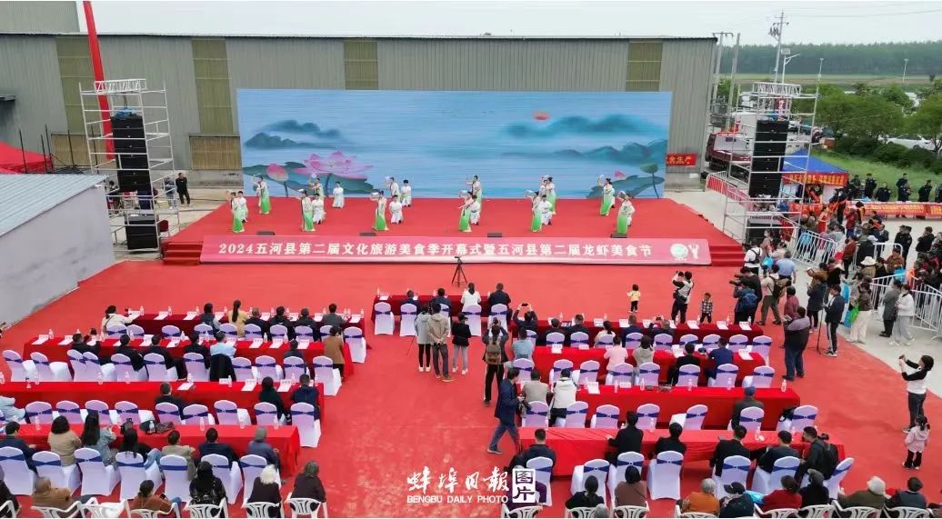 涡河边灯歌飞扬,沱湖畔则是“蚂虾迎客”。4月29日上午,2024五河县第二届文化旅游美食季开幕式暨五河县第二届龙虾美食节在五河县沱湖乡大岗村正式开幕。作为典型的水乡平原,五河生态环境秀美宜人,农业资源得天独厚。近年来,五河大力推动农文旅融合发展,培育了以“沟东村梨花”“清明庙会”“沱湖水产”等为代表的乡村旅游新名片,农文旅产业呈现出蓬勃发展的良好态势。自去年首届龙虾美食节、梨花节举办以来,五河吸引了各地游客前来观花海、品龙虾、赏民俗,不仅打响了乡村旅游品牌,更形成了一个富民产业,实现了从美丽风景向美丽经济有效转变。