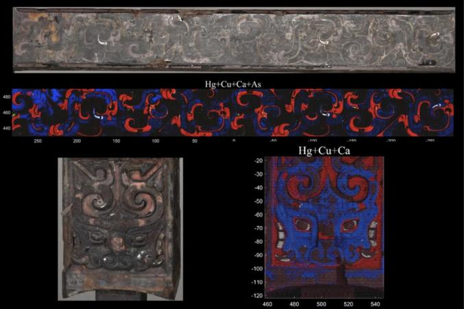铜甗出土文物保护和多学科研究成效显著。研究团队在考古发掘现场搭建雾化喷淋系统,有效控制椁室内微环境,避免了椁板、漆木器等有机质文物因温度升高、水分蒸发而开裂与变形。提取到室内的各类文物及时采取了应急保护措施,易腐变的有机质文物样品存入低氧灭菌舱,控制湿度和氧气以减缓其劣化速度;提取的大量木俑已开展了清洗和保湿处理,着衣俑表面织物已利用丝蛋白技术原位加固;漆器纹饰和图案采取了曲面微区X射线荧光光谱仪进行信息提取,为后续修复提供科学依据。
