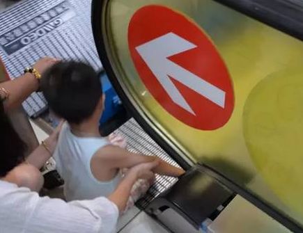 在上行过程中,若是把头部伸出扶梯向下看,极易导致意外发生。05