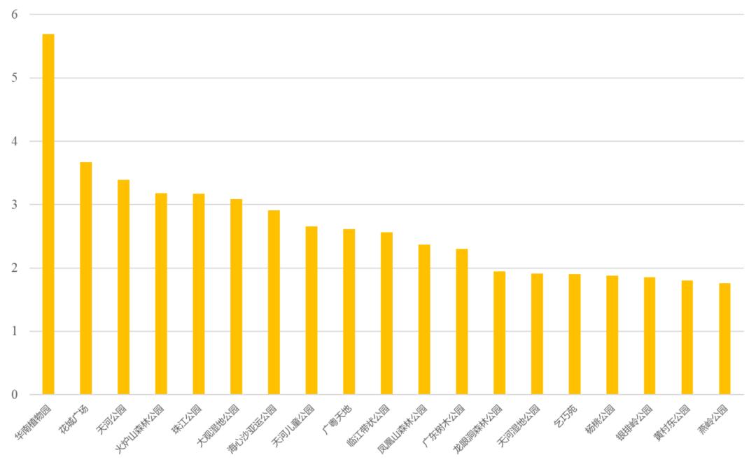 大众点评APP公园热门度排行表图源:自绘