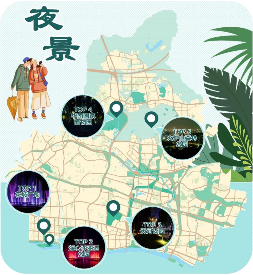 天河区公园“夜景”热门打卡点分布图图源:自绘