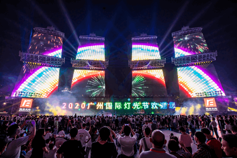花城广场灯光音乐会在每年春节期间举办,以广州塔为中心,珠江两岸和新中轴线夜景为背景,联动花城广场现场音乐,上演大型城市灯光表演,打造节日视觉盛宴。