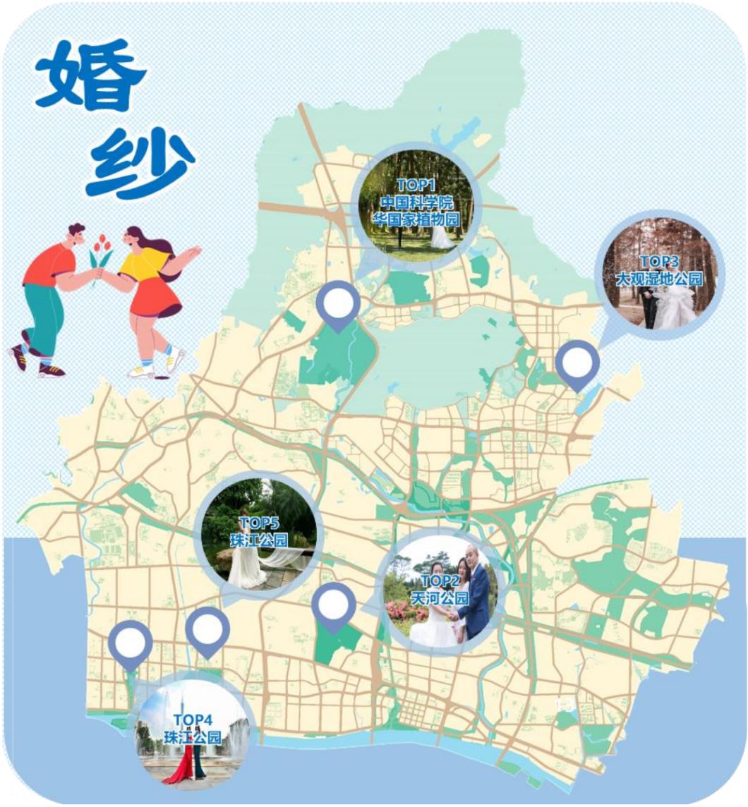 天河区公园“婚纱摄影”热门取景地点分布图图源:自绘