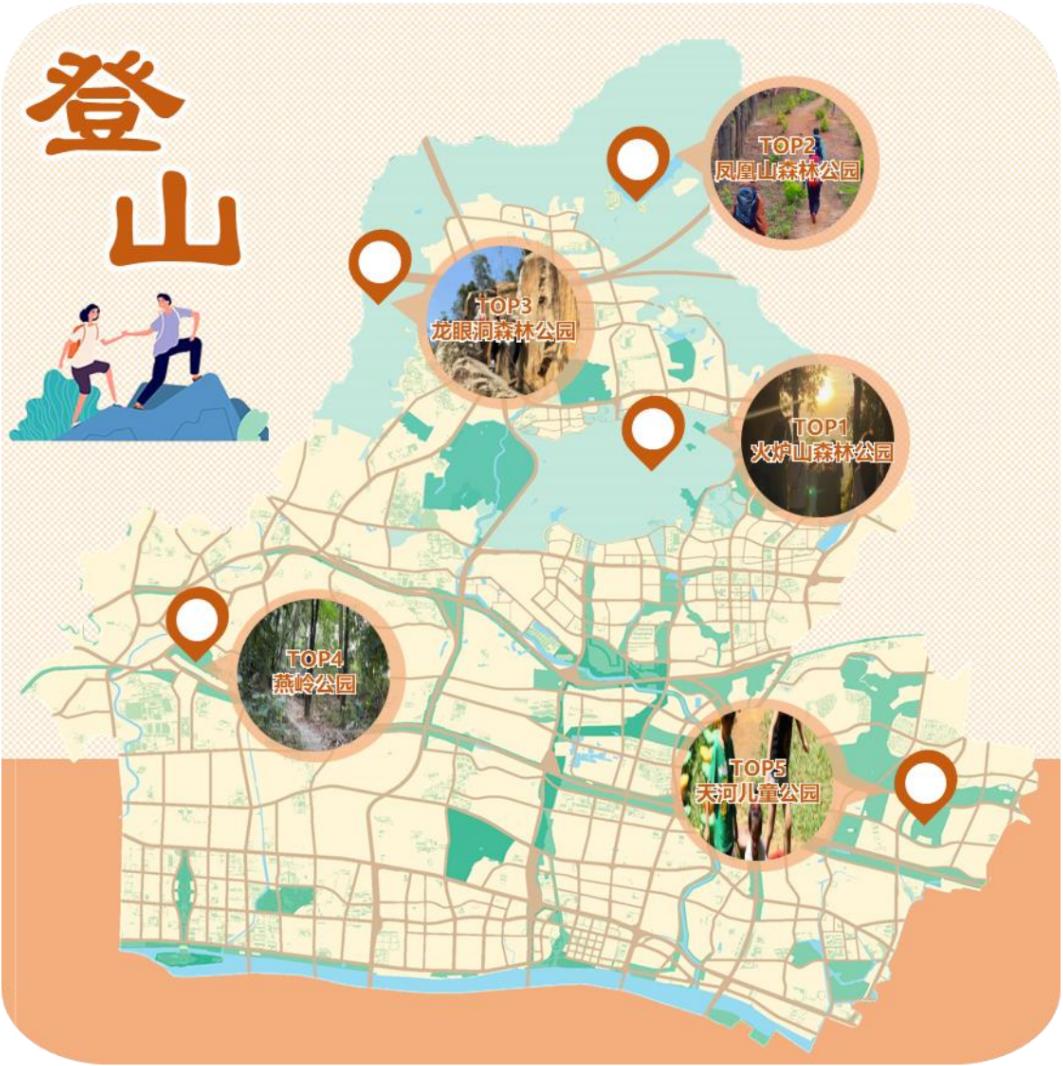 天河区公园“登山”热门打卡地点分布图图源:自绘
