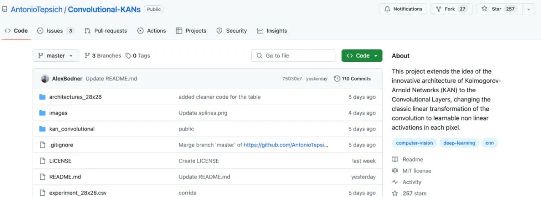 项目地址:https://github.com/AntonioTepsich/Convolutional-KANs