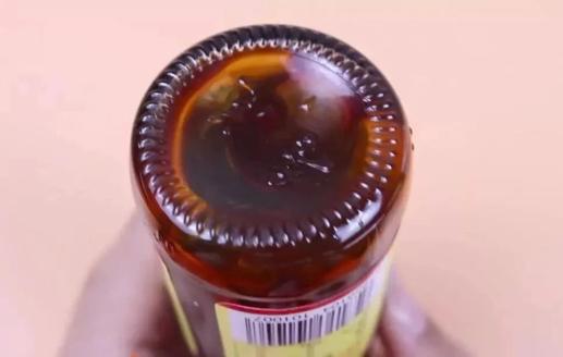 把蚝油瓶倒立过来,等待10秒左右看瓶底的颜色,如果呈现出这种微微发红的颜色,并且非常通透,那么这瓶蚝油的品质比较好。