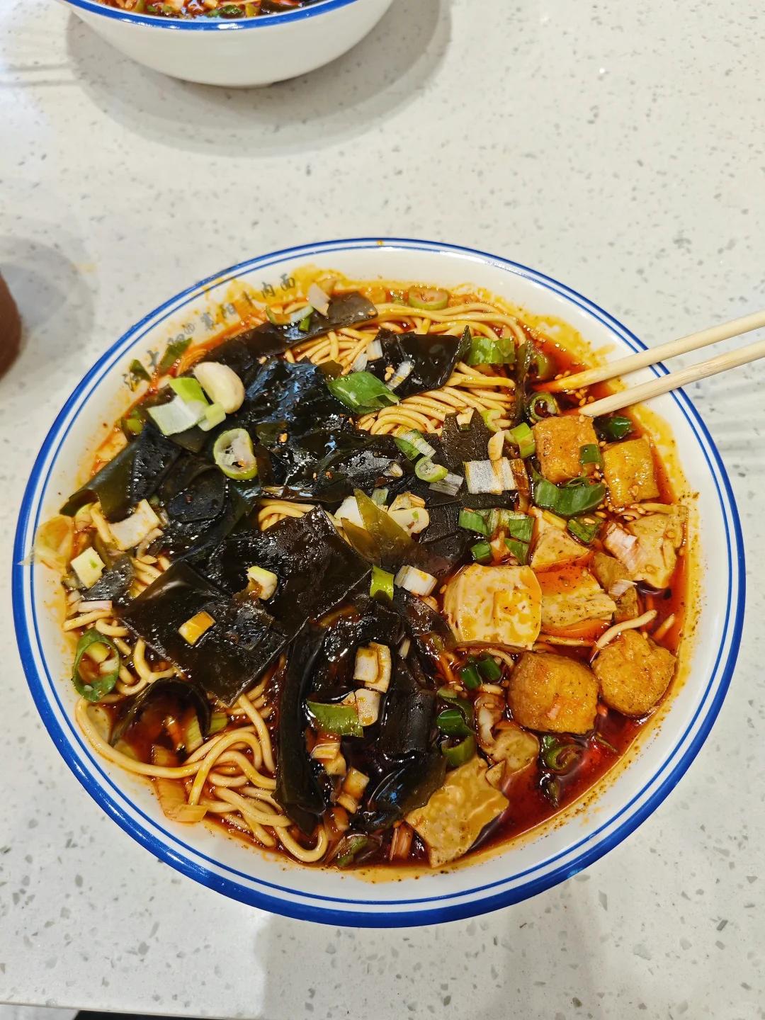 比起牛肉面,瞧妹爱吃酸辣面,酸辣开胃!海带软糯可口,绿豆芽脆脆的!夏天的时候没胃口也吃的很开心。