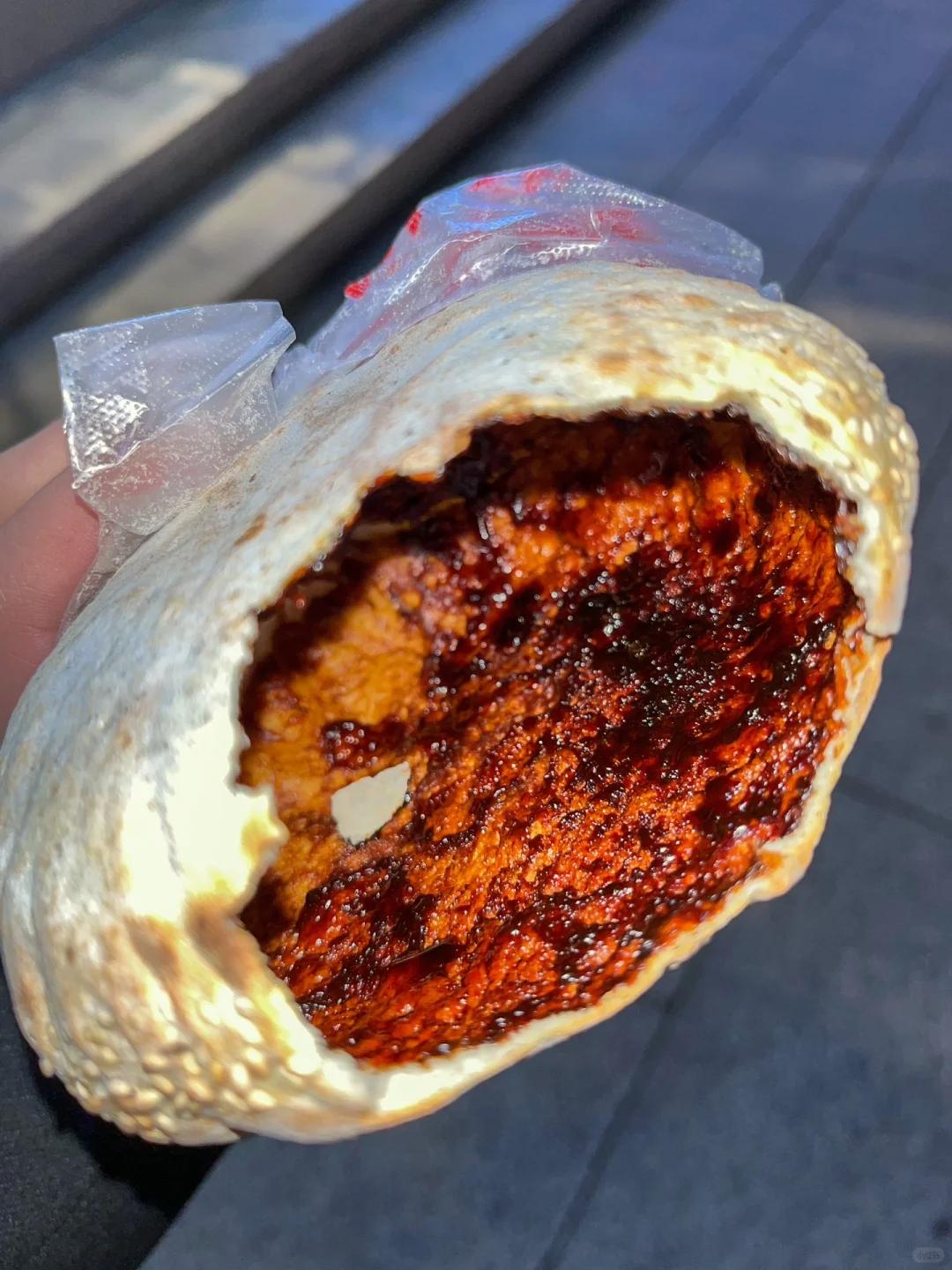 刚烤出来的红糖饼最好吃,像充了气的气球一样,咬一口还挺酥脆,红糖不算特别的甜,超级满足。