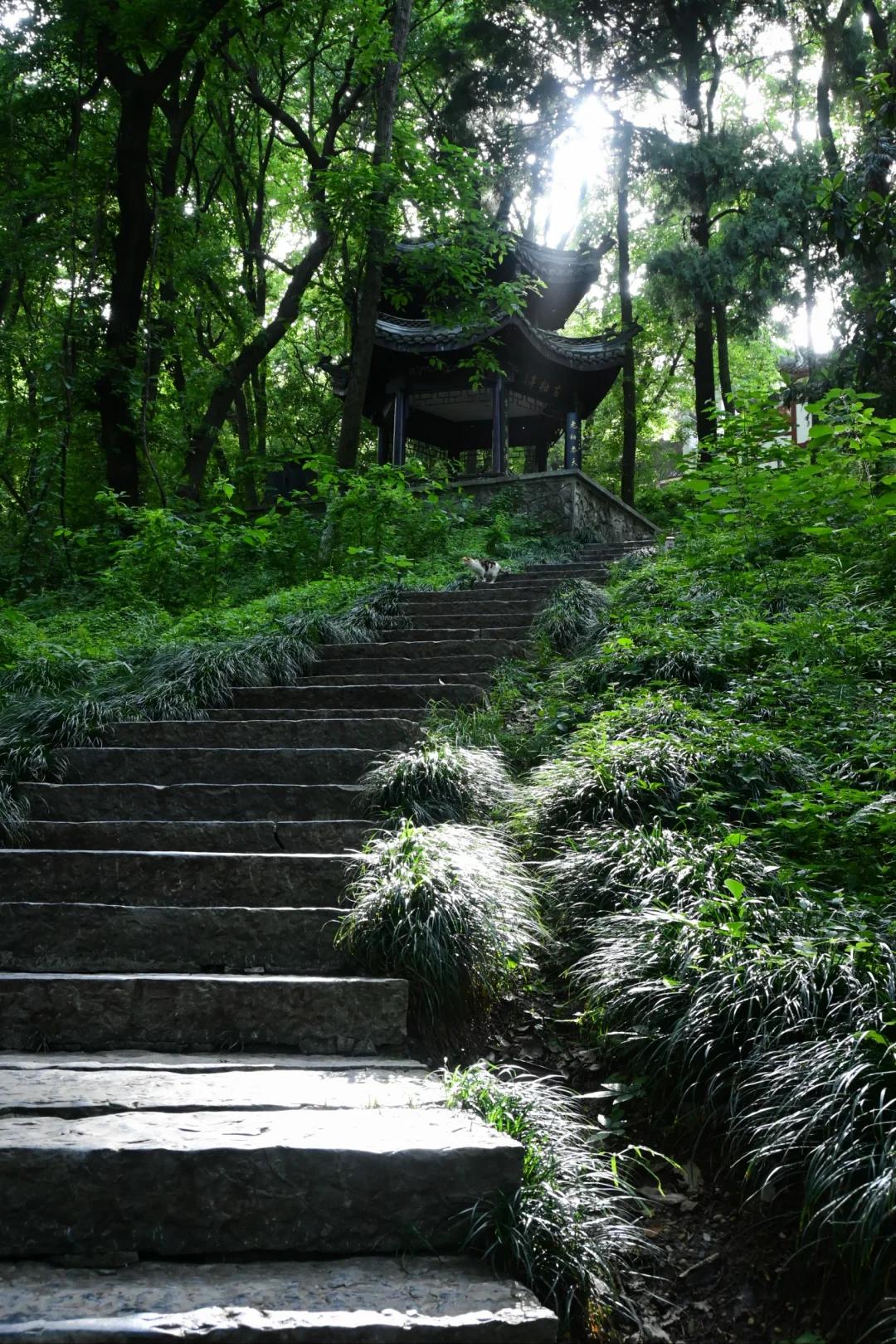 从古牌坊开始,沿着隆中路向上,书院、草庐亭皆在路上,步行至半山处抵达武侯祠,能逛的地方很多。