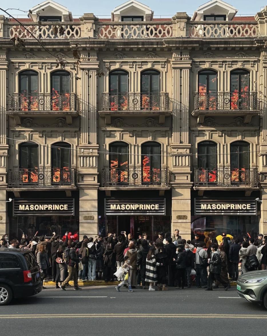 自围挡期开始,MASONPRINCE就因其大尺寸的时尚人物海报墙成为淮海中路区域街拍的热门地,一批消费者对其开业抱有期待。
