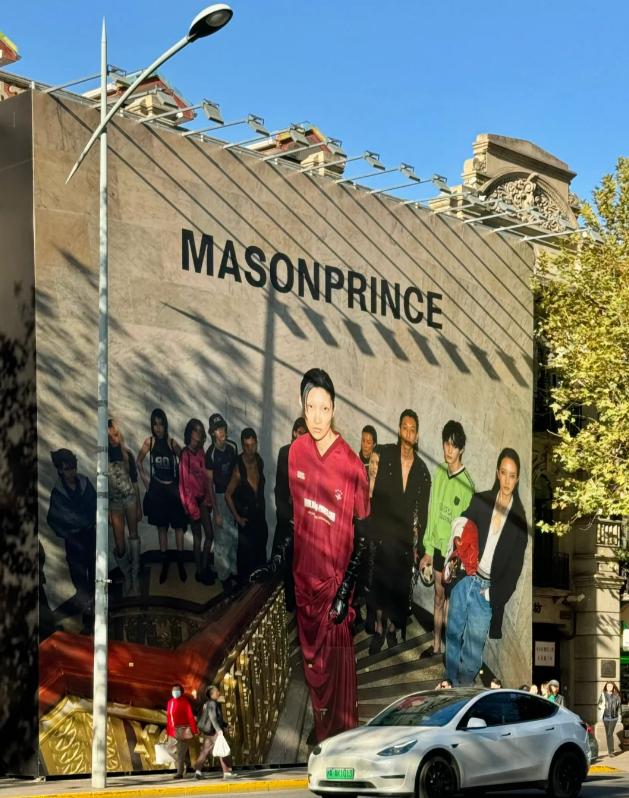 △ 门店围挡,图源小红书:453597726据悉,MASONPRINCE为深圳本土服饰品牌,创立于2014年,以原名MP STUDIO起步于线上,主打都市、街头、复古和未来主义风格,吸引众多明星艺人上身。