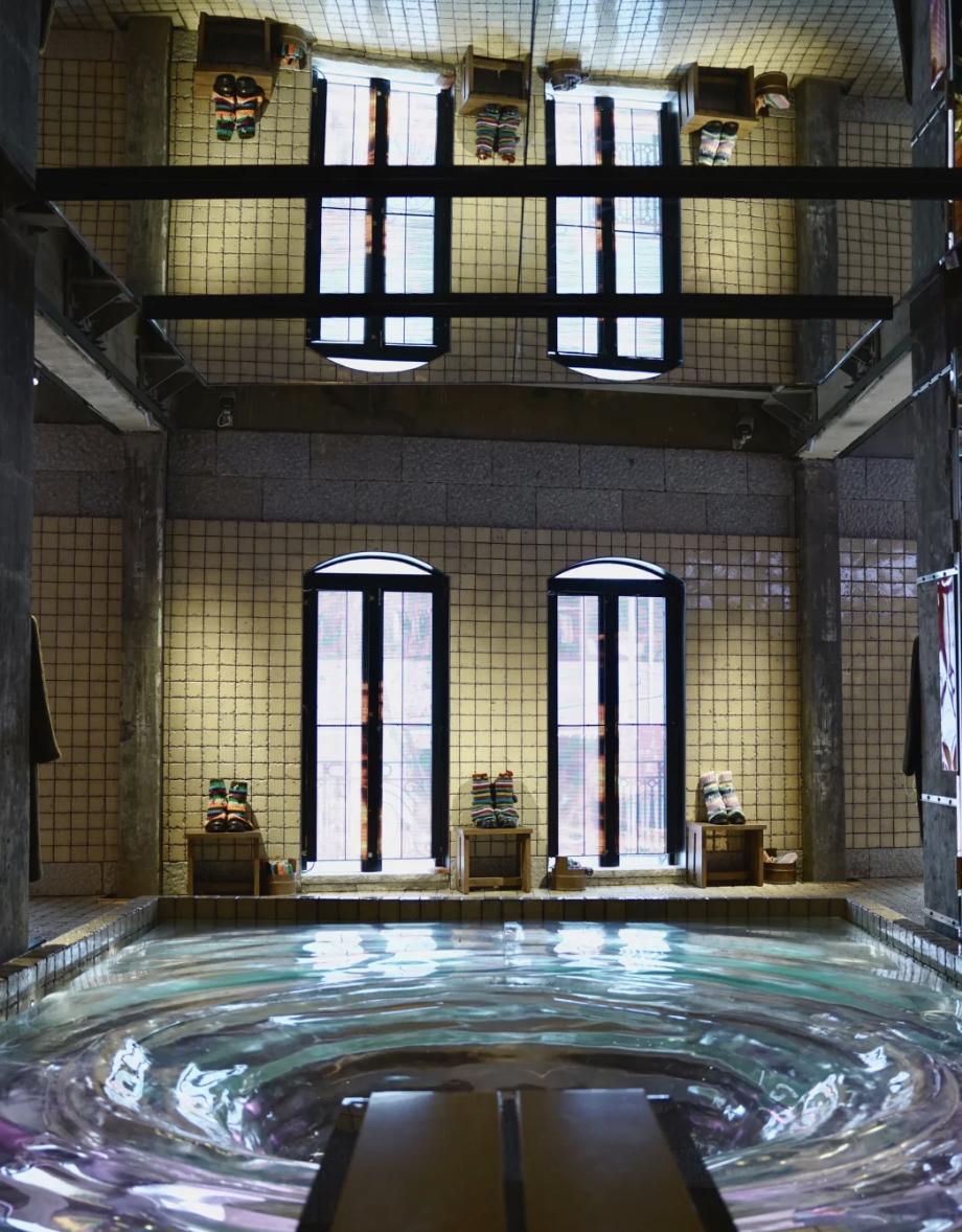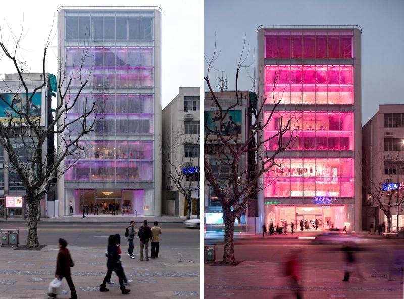 淮海中路店原为珠宝品牌莱绅通灵的专卖店,位于TX淮海对面,拥有完整的3层独栋空间,在复古风格的建筑中融入现代设计,外立面应用了“着火”设计,室内则包含泳池、喷泉、大靴子等特色装置,彰显创意。