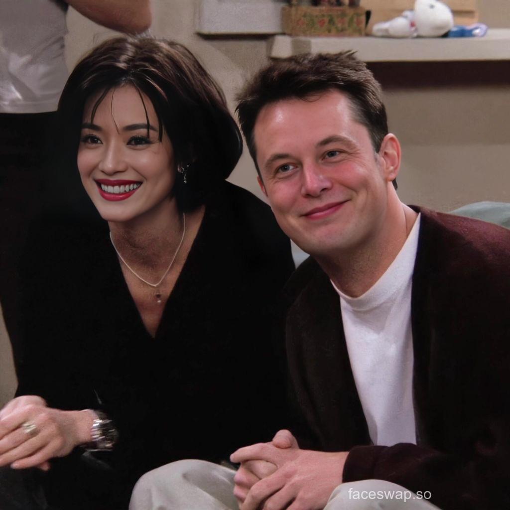Faceswap 也可以换脸多人照片。例如,我们把《老友记》中莫妮卡和钱德勒分别换成舒淇和马斯克(没想到舒淇和马斯克这两个八杆子打不着的人同框了)