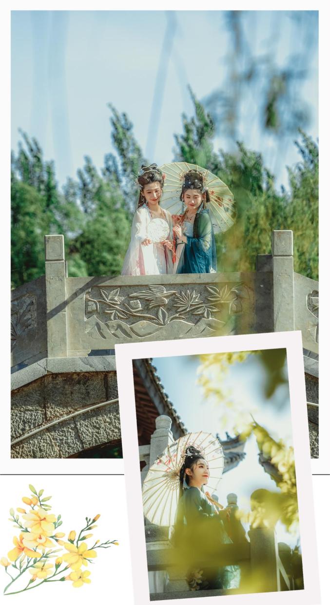 乘船游完湖,在桥上拍摄时,将湖边垂柳作为前景,更添江南水乡的那份柔情蜜意,宛如一幅细腻的画卷徐徐展开……锦绣江南!俏丽佳人游园嬉戏
