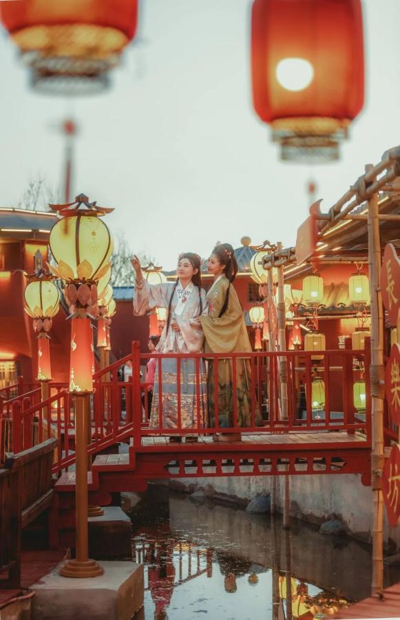 地点:长乐坊平行于永兴坊的长乐坊,超多的拍摄点位,尤其华灯初上时,温暖的灯光,木制的装饰,古朴之感扑面而来。随意的几步变换,都能看到不同的精致,桥、亭、灯、水,静谧优雅,轻易就深陷其中。