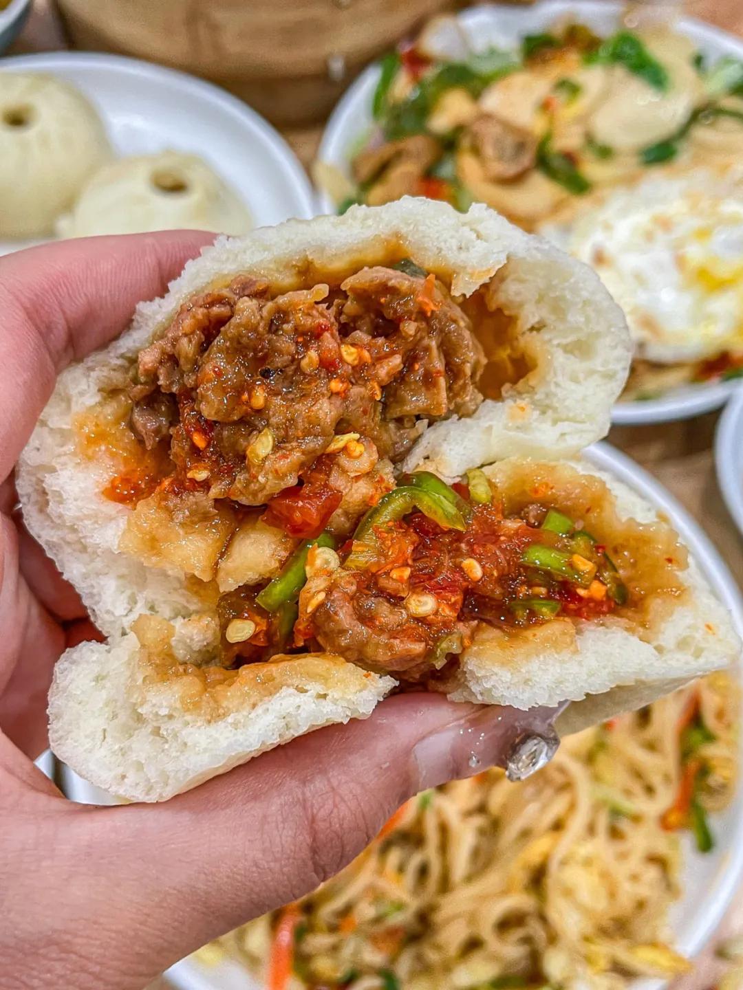 一口咬下去,蓬松又多汁,葱和鸡蛋的汤汁马上烂在口中,葱香蛋香混合着浓烈的辣,不来上两个,难解口腹之欲。
