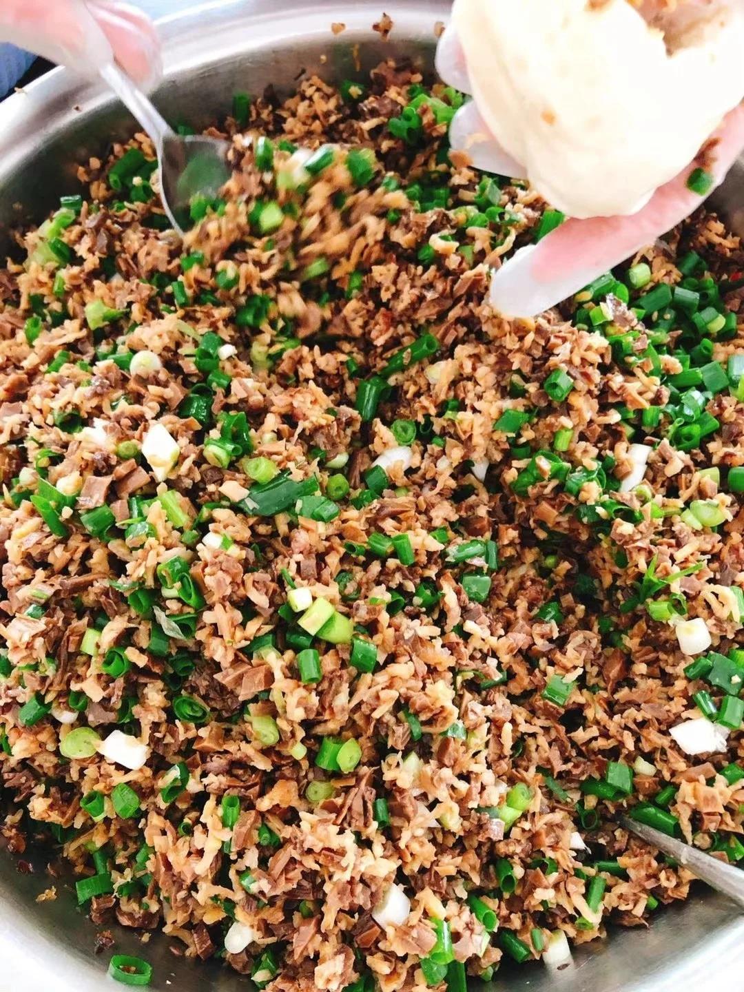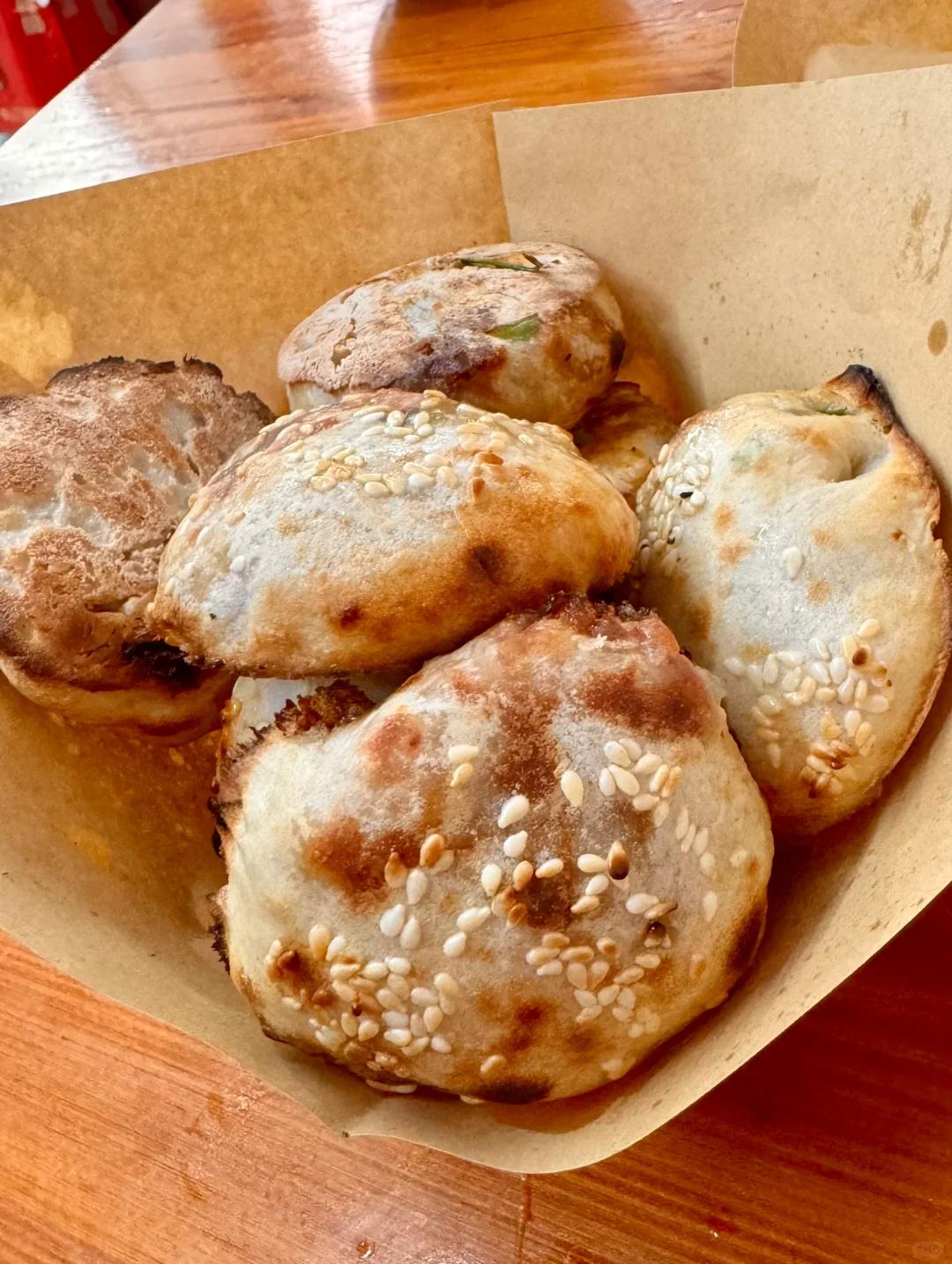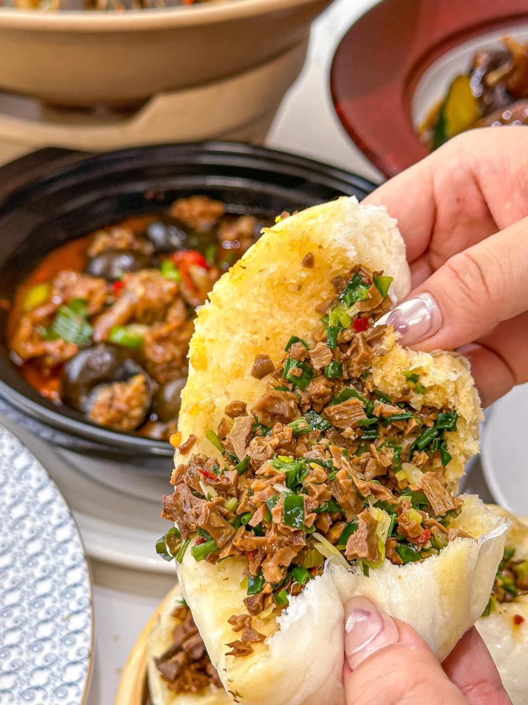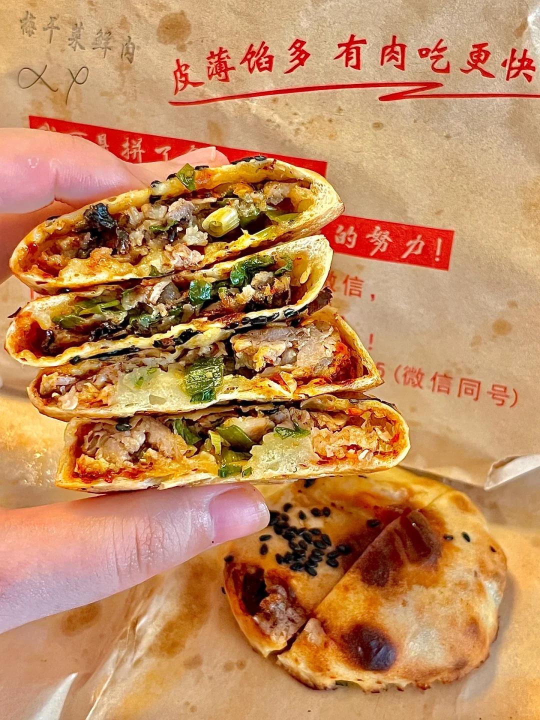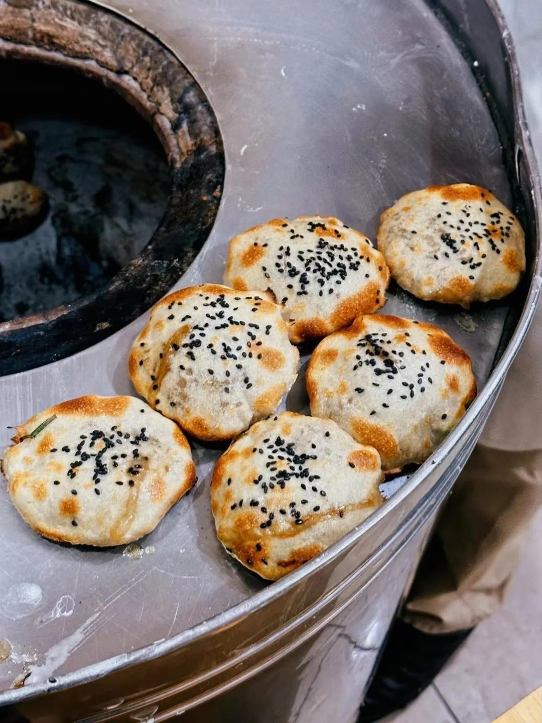 开了30多年的老店了,第一口好像新疆烤包子,第二口觉得皮更薄,馅更足,还可以选梅干菜+榨菜的组合,一口下去,混着肉香的汁水就流出来了。