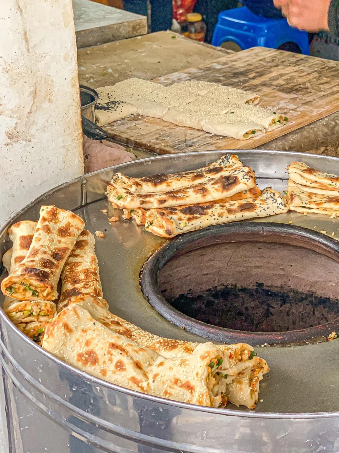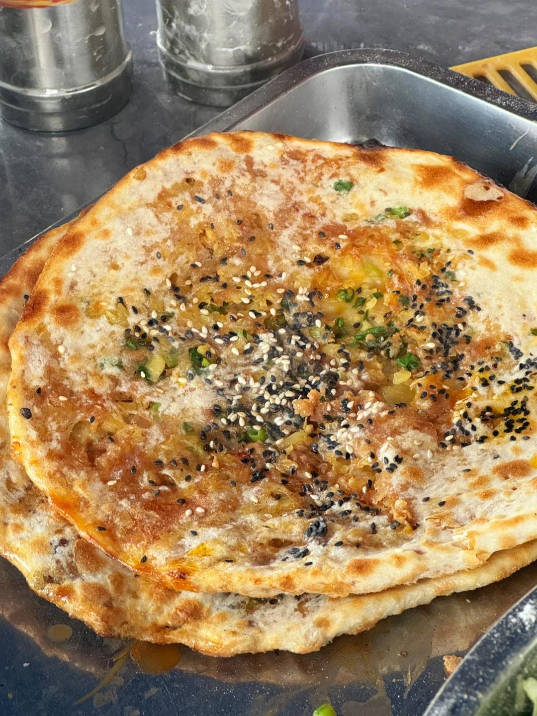 @会吃会玩的刘海儿本地的烤饼有大有小,最经典的就是葱油饼,把葱花直接包裹进去烤,刚出炉的时候,葱香四溢。
