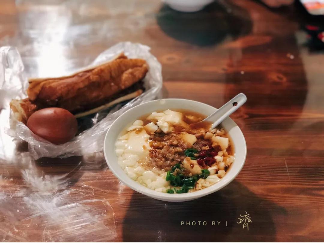 很多衢州土著们,还会在最后配一碗鲜咸、细嫩的豆腐花,咬一口饼酥脆,喝一口豆腐花滑嫩,一顿早餐就堪称完美了。