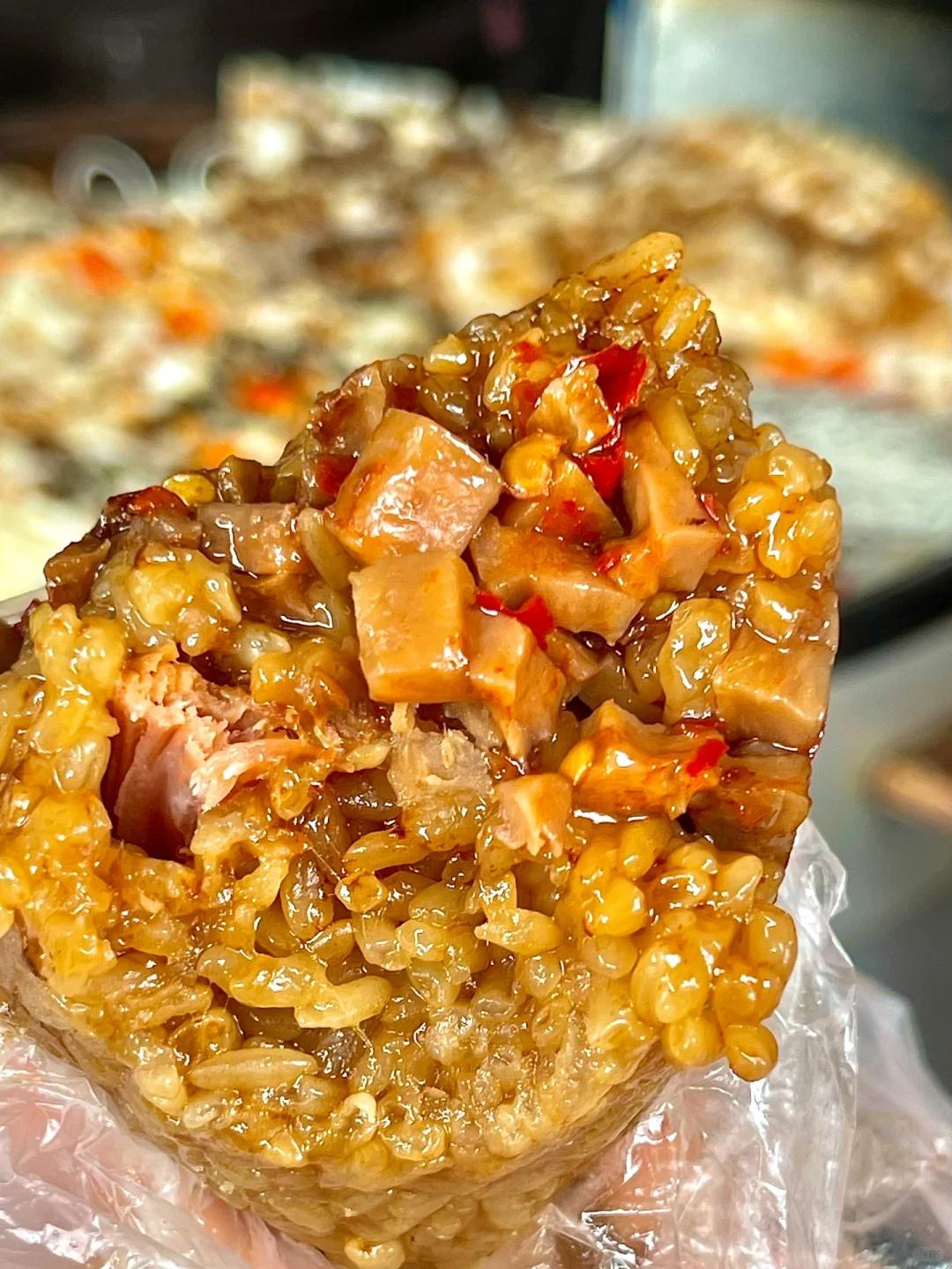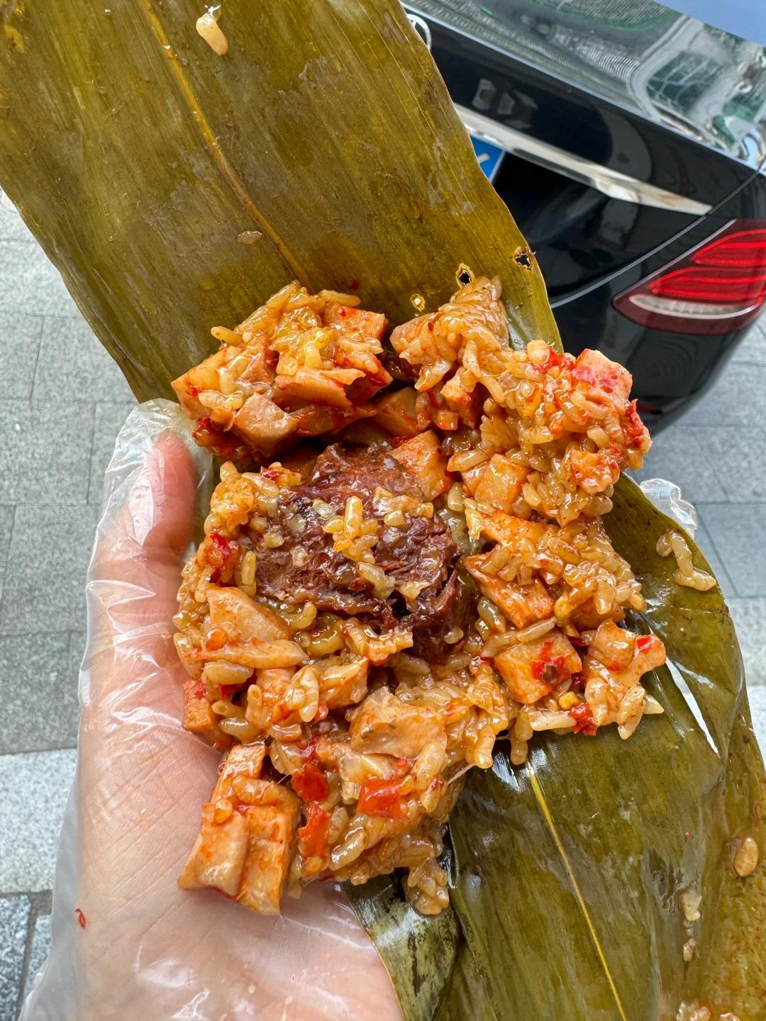 @吃不饱的小Air软烂的芋头与糯米黏在一起,软软绵绵的粽子包裹住油润的鲜肉、辣椒和辣椒,奇妙、热辣又过瘾。