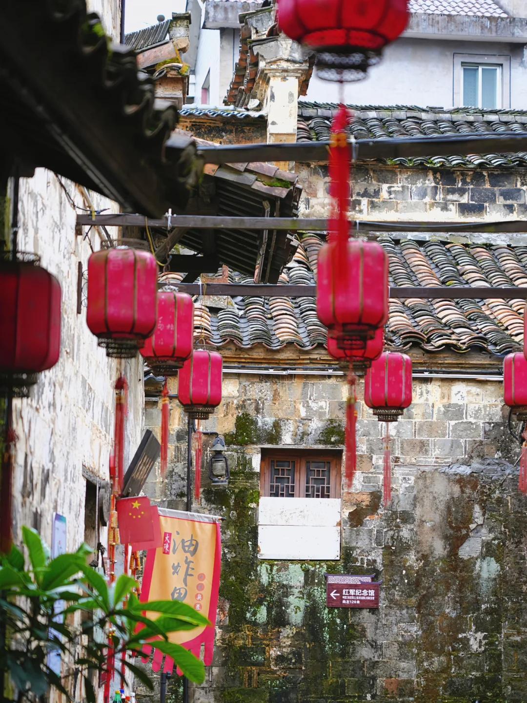@自由行走的cat徽式的马头墙、闽式风格的土墙门落、江浙流派的屋脊里厅……三省建筑风格交织在一起,房廊相接。