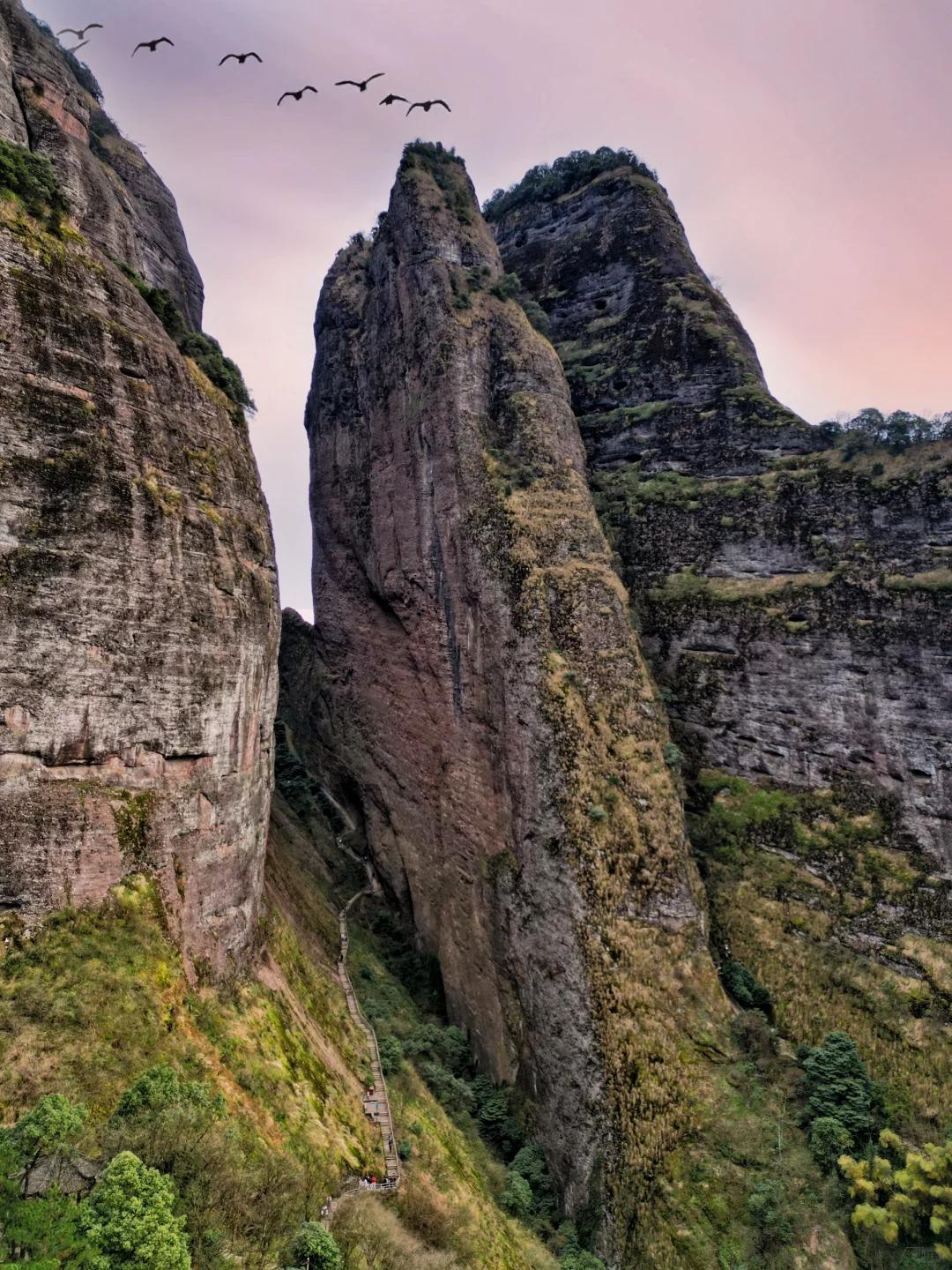 ▪️江郎山:算是这一路以来最知名的景点了,徐霞客曾三顾此地。我们爬完一线天就下山了,体力好的可以挑战爬到山顶(据说难度很大)。拍江郎山的机位推荐【观郎亭】。