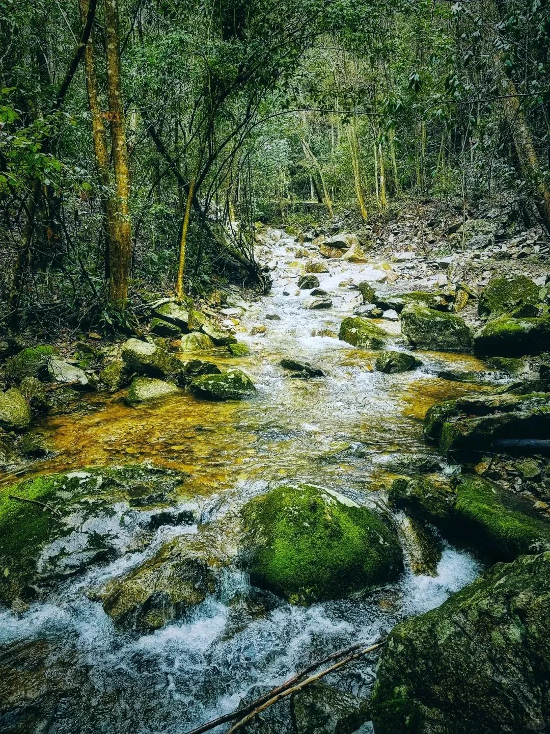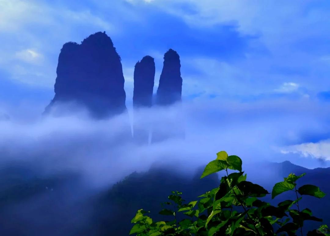 @小熊打卡日记两岸青山对峙、绿树滴翠,雄伟的“三爿石”摩云插天,三大石峰拔地如笋,“一线天”的奇观气势如虹。