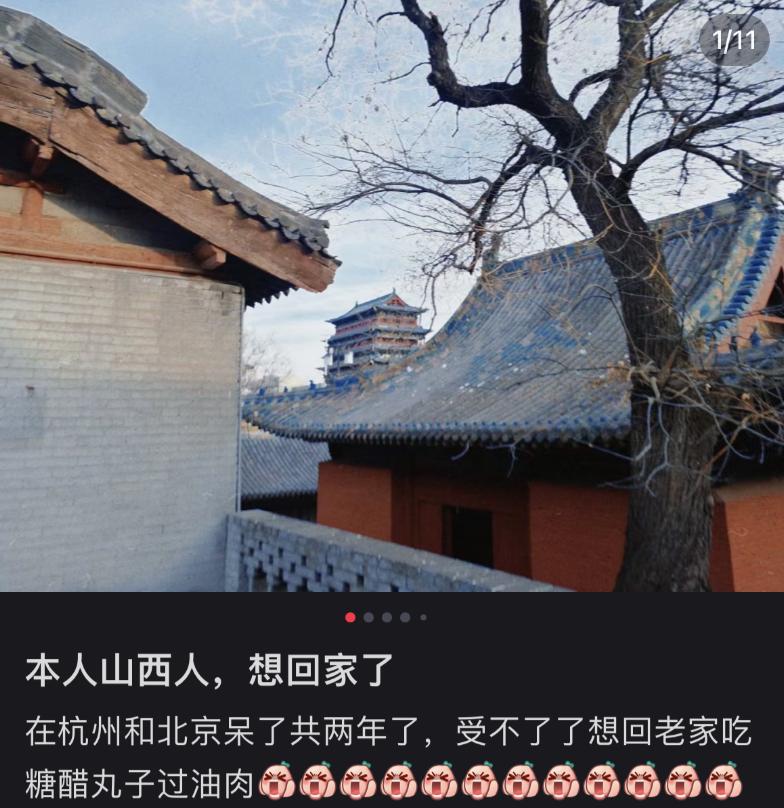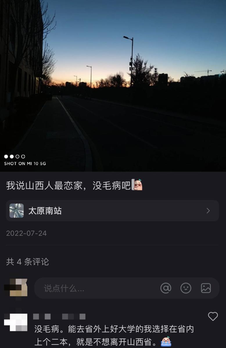 图源@猫猫山西人丁丁,曾经去北京打拼过,结果刚漂了两年就毅然决定回老家,“吃同样的饭,干同样的工作,在北京的每一秒都很焦虑,但回家后一切抑郁情绪都不药而愈了。”