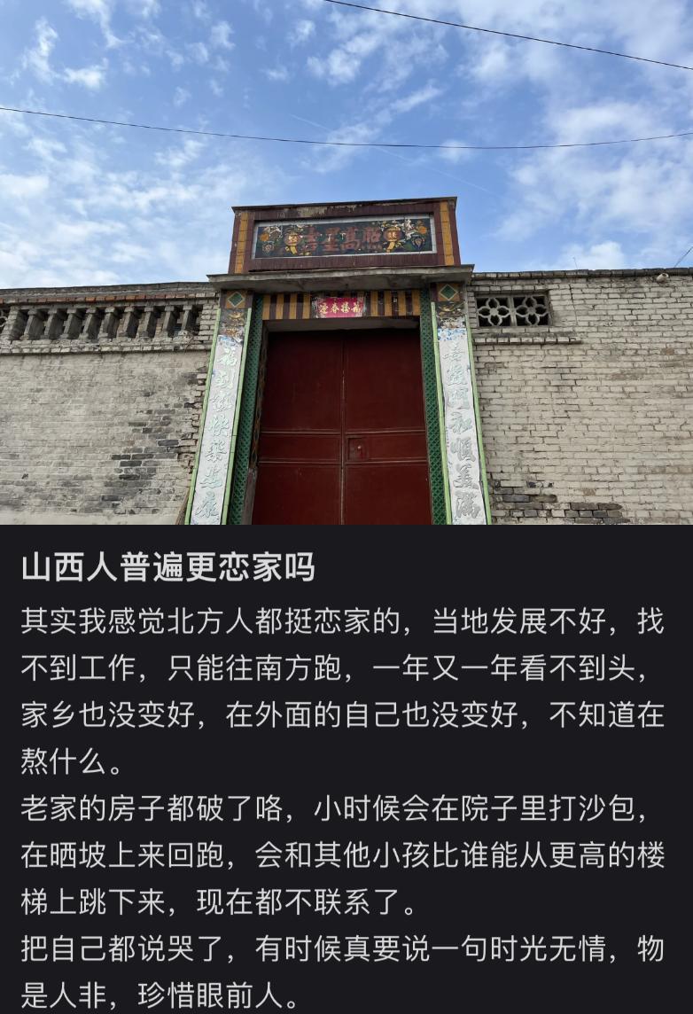 图源@别管羊了至于自己为何如此恋家,或许山西人自己也说不清楚,但如果你问他们待在老家幸福吗,一定能得到肯定的回答。