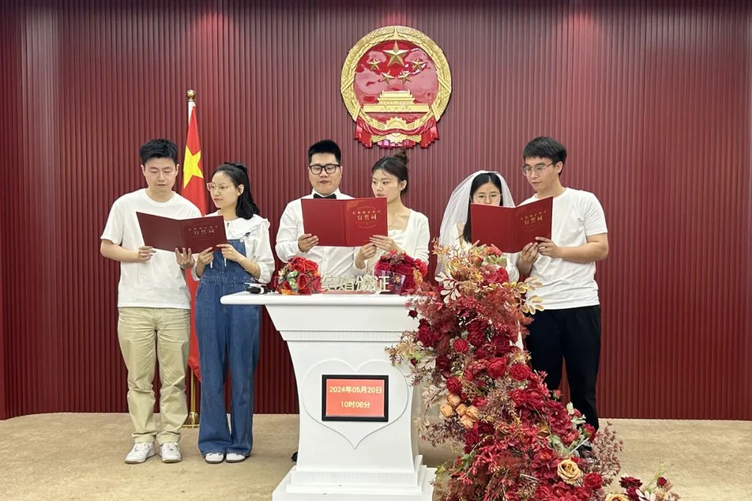 “我们提前一个月就预约了,主要因为这一天不仅仅是寓意‘我爱你’,还是小满节气,小满胜万全,希望我们的未来恩爱有小满。”新人姚伊静说。