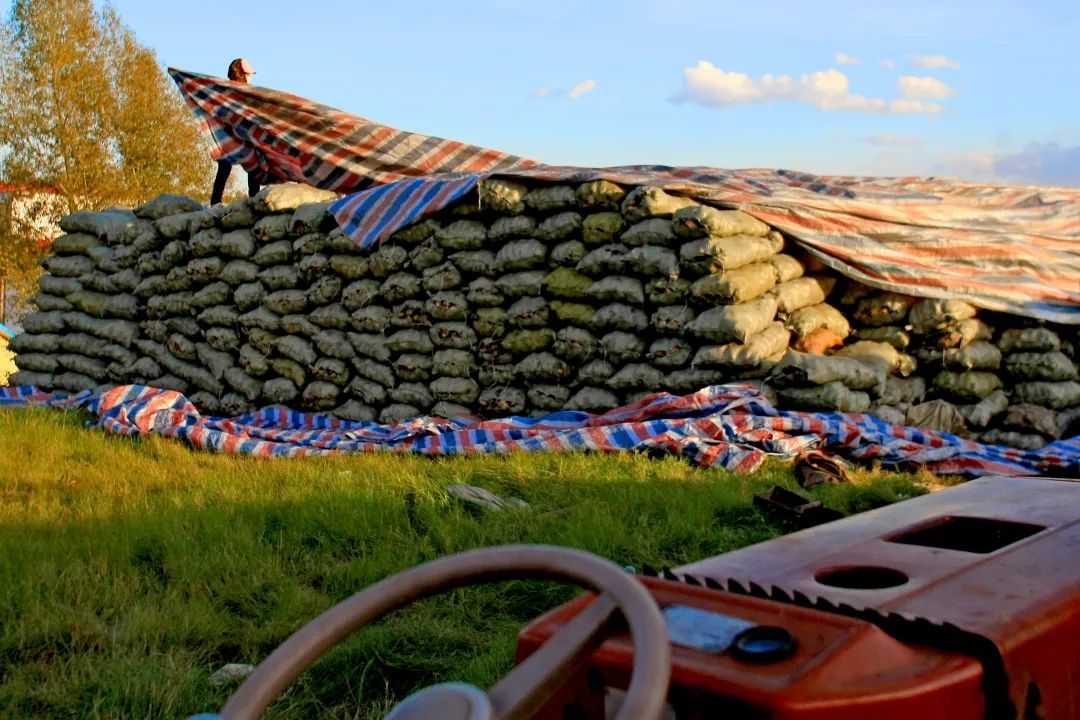 丽雪精淀粉公司收购的马铃薯堆积成山。