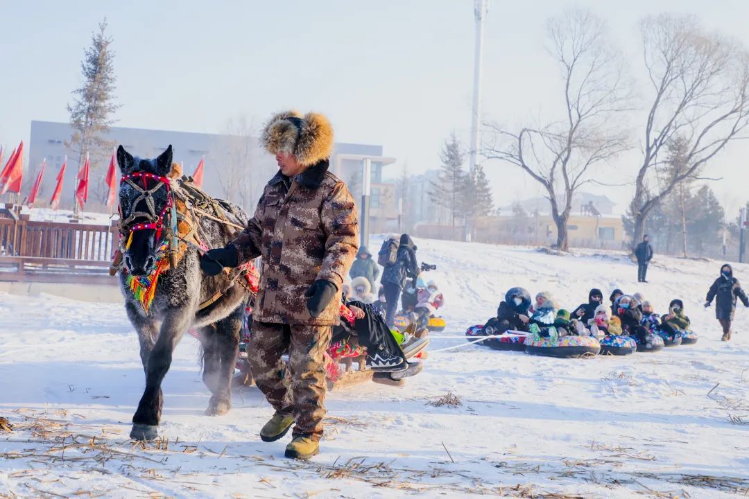 呼玛县的冰上马拉爬犁项目备受游客青睐。