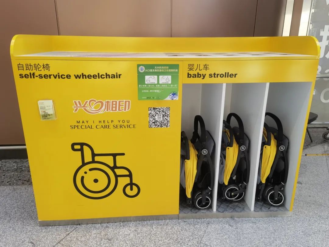 候机区内设置19处免费轮椅自助借用点位