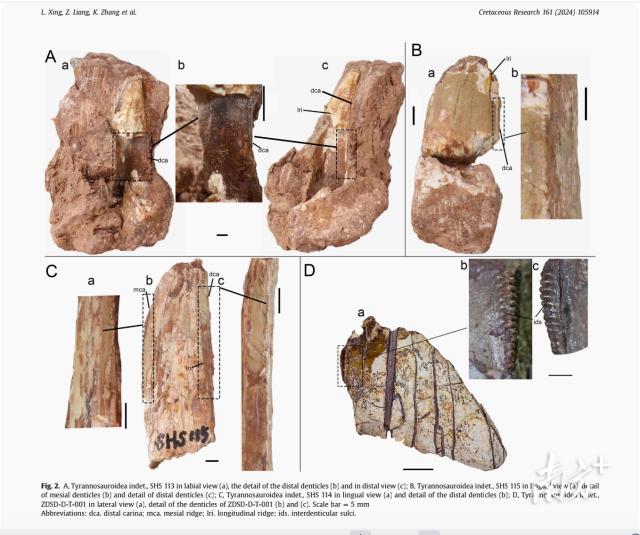 研究团队近两年来针对这些牙齿的形态特征进行了系统发育分析和判别分析,结果支持四颗牙齿属于暴龙超科。
