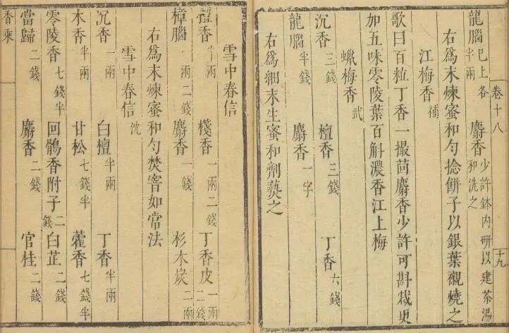 明周嘉胄所撰《香乘》,载有“雪中春信”香方宋代文人陈敬所撰《陈氏香谱》中载有“雪中春信”的香方: