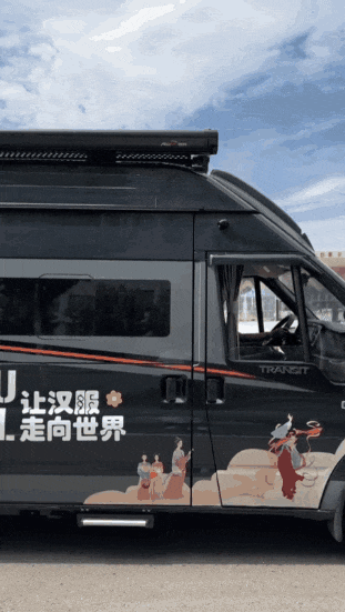 她先是买了一辆车,办好了护照,还在车的两边贴上了“让更多人了解中国”“让汉服走向世界”的字样。