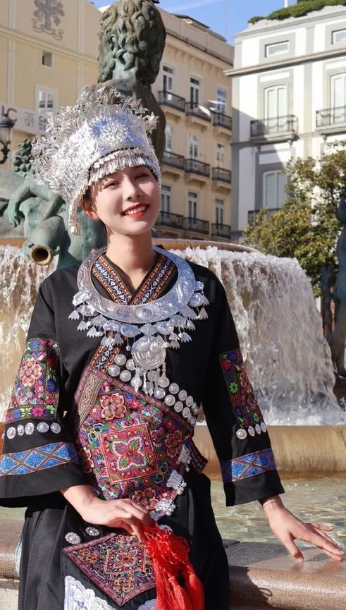 哒哒发现,在国外的街头,无论走到哪里,自己永远都是人群的焦点。从不同朝代的汉服再到各少数民族服饰,她大胆地向世界展示着中国传统服饰的美。