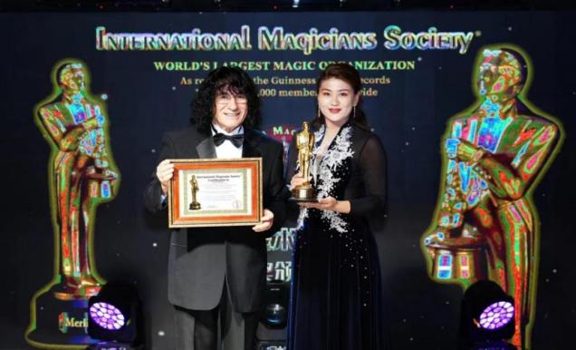 IMS国际魔术师协会主席兼首席执行官托尼·哈悉尼为沈爽颁奖IMS国际魔术师协会成立于1968年,旨在全球范围推广和普及魔术艺术,与全球魔术爱好者分享魔术之趣、成就魔术行业,是全球最权威的魔术组织之一。“梅林奖”(Merlin Award)由IMS国际魔术师协会发起并颁发,代表着魔术艺术界的最高荣誉,也被称为“世界魔术杰出贡献奖”,授予在世界范围内魔术领域表现卓越的魔术师、魔术作品,以及对世界魔术艺术发展作出重要贡献的从业者、团队。