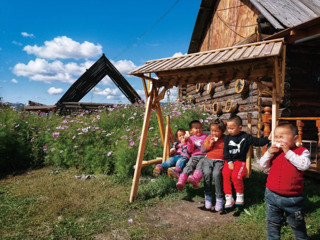 2019年9月14日,白哈巴村的孩子们。(图/视觉中国)每年阿勒泰地区进入冬季时,布尔津县的红塔楼就成为迎接游客的一抹亮色。游客往往会在布尔津县短暂停留休息,等待一场雪的到来。这时候,往日肃静的布尔津县也会变得格外热闹起来。