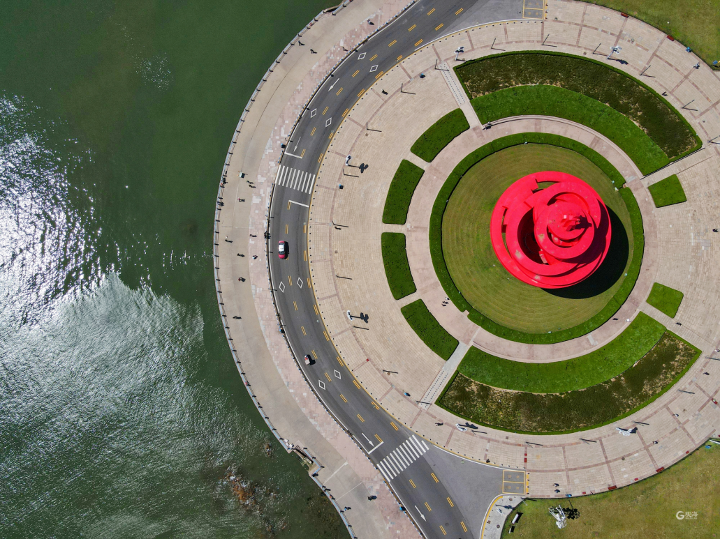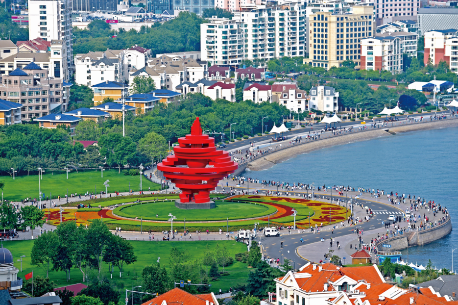 继续前行,就到了来青必打卡的五四广场,广场主体火红雕塑“五月的风”总能令人眼前一亮。乘坐铛铛车,同样可以感受到其与草坪、喷泉、大海的和谐映衬,热烈而醒目。