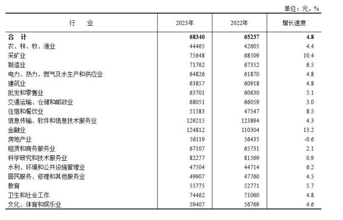 2023年,金融业的平均工资增速最高